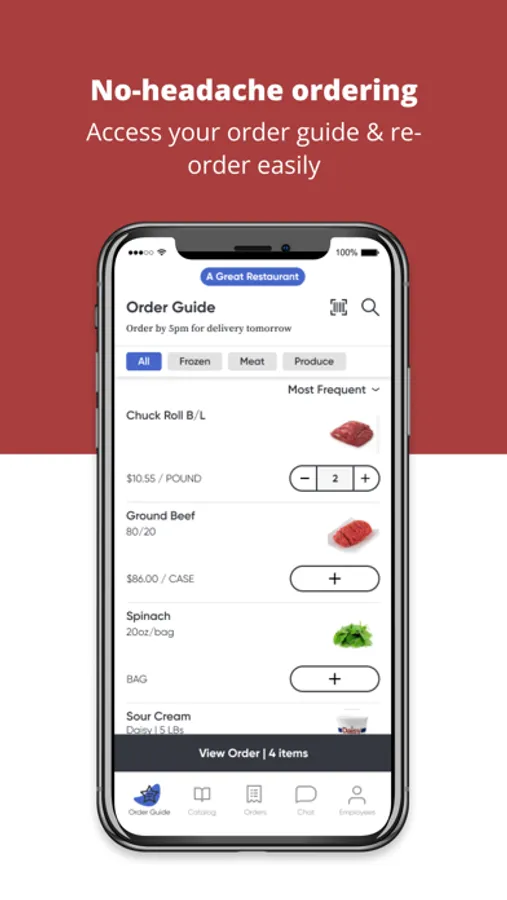 Our mobile app lets you search our complete product catalog, manage and update your ordering guide, and buy what you need at the moment you need it. It’s part of our commitment to giving you an ordering experience you’ll love.