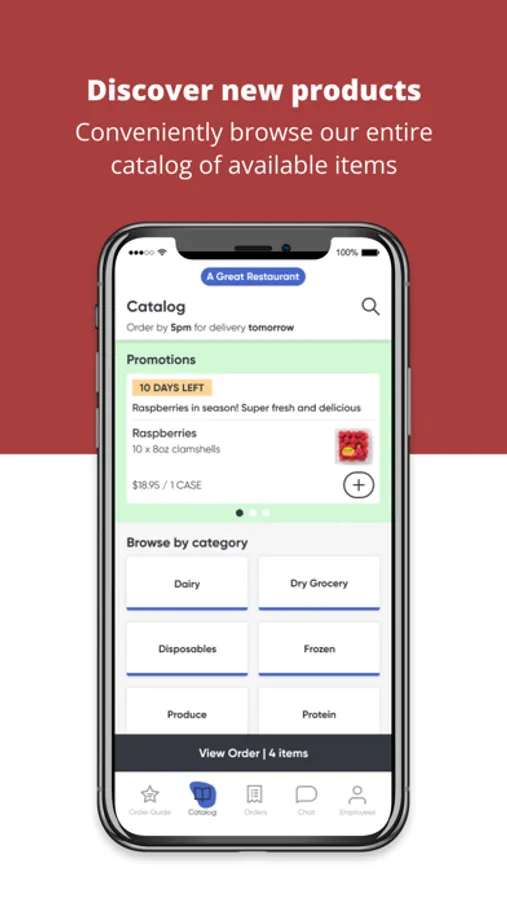 - Keep everything together: delivery days, cutoff times, order updates, and promotions all in one - place