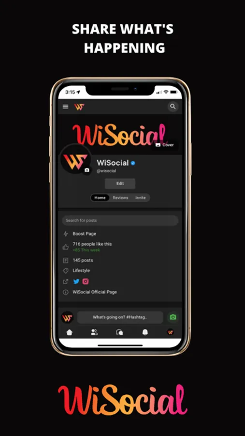 WiSocial chronological home feed, you'll never miss a post from anyone that you connect with.