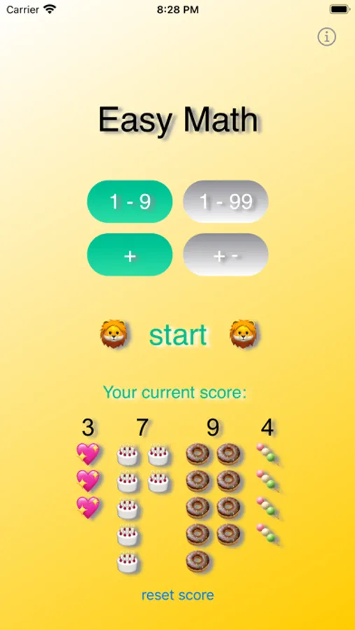 User can choose the number range 1~9 or 1~99, to calculate only addition or both addition and subtraction.
