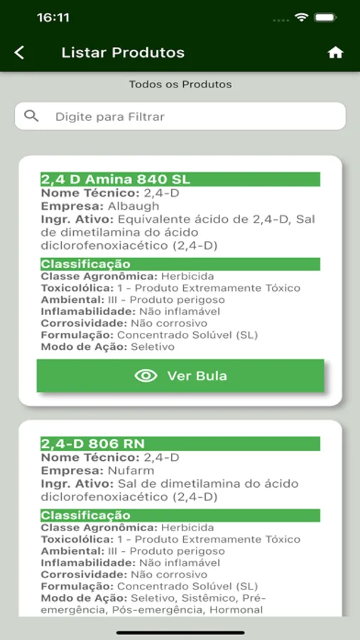 Bulário de Defensivos Agrícolas que funciona sem a necessidade de conexão com a internet