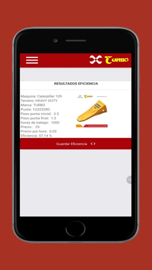 Aplicacion que permite calcular la eficiencia de las Puntas usadas en maquinaria pesada, ingresando parametros como Horometro, Peso inicial, Peso final y precio de la Punta, si el modelo es TURBO, la aplicacion cargara los parametros automaticamente, permite guardar las eficiencias para saber cuando una punta fue mas rentable, tiempo vs precio.
