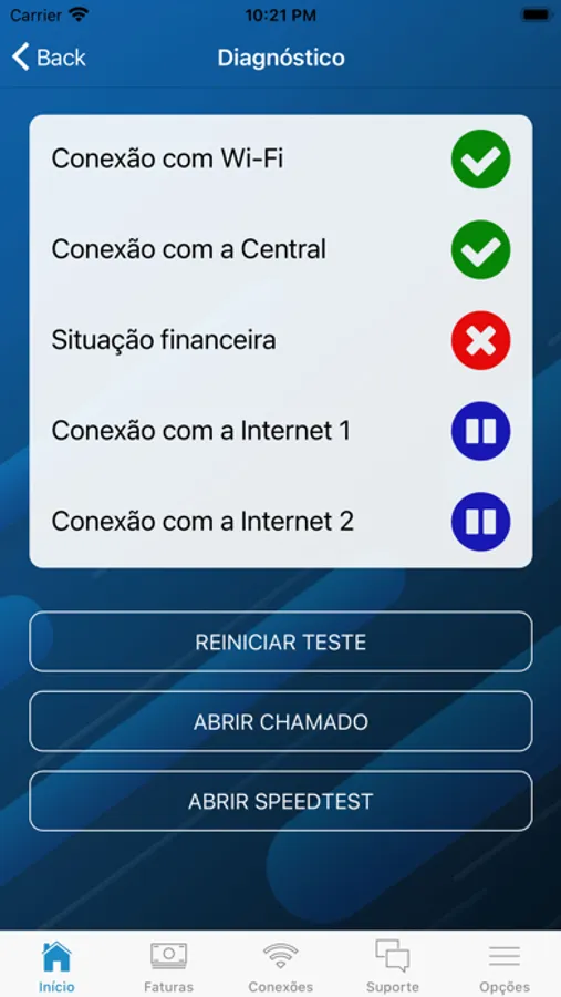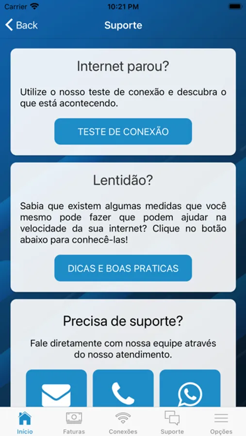 • Realização testes de conexão e velocidade;