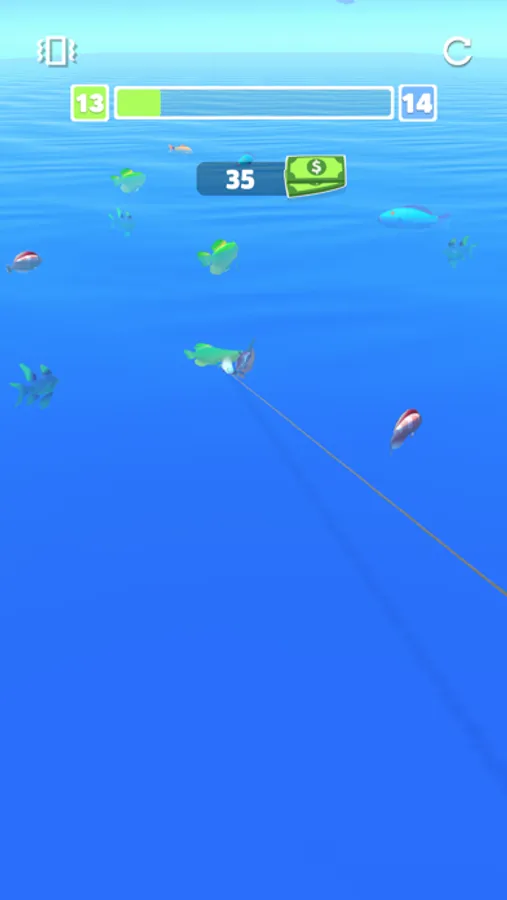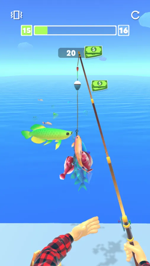 Start fishing with the fishing rod you prepared in the final part. You can earn more money with each fish and make your fishing rod stronger at the beginning.