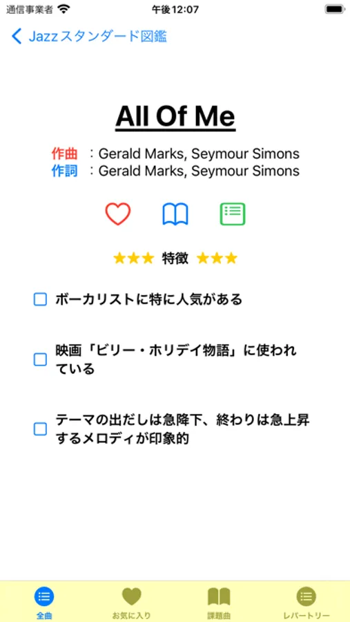 ・Jazzスタンダード各曲の特徴を簡潔に3つにまとめました。
