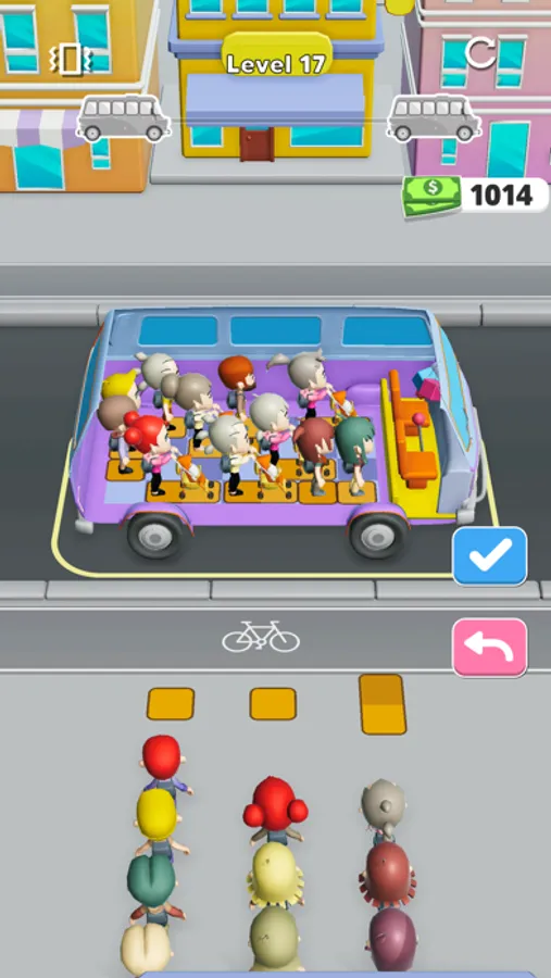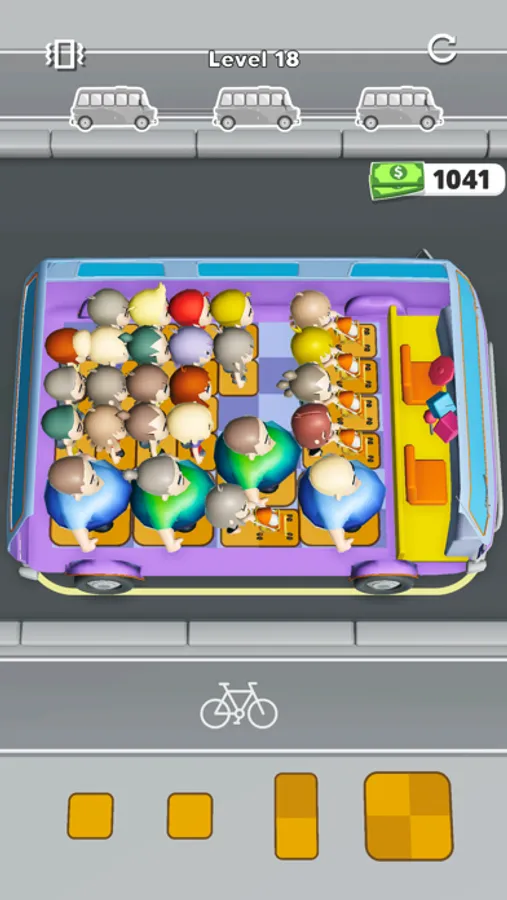 How about filling different sizes of people on many buses with one finger? Passengers occupy different sizes of space, and you can choose the type of passenger you want from the stop and place them wherever you want on the bus. In this game supported by different camera angles, when each bus is full, the next bus arrives. You have to fill all the buses in the section with available passengers.