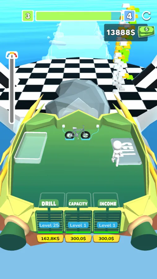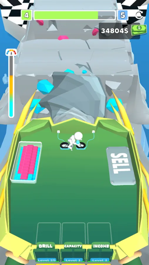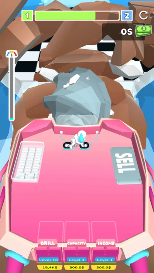 Our giant drilling tool is at work. Turn the pedals to start the vehicle with your character. Sell the collected mines and improve your vehicle even more.