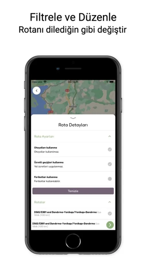 With the specified route features, you can customize your route with filters such as toll road and ferry use.