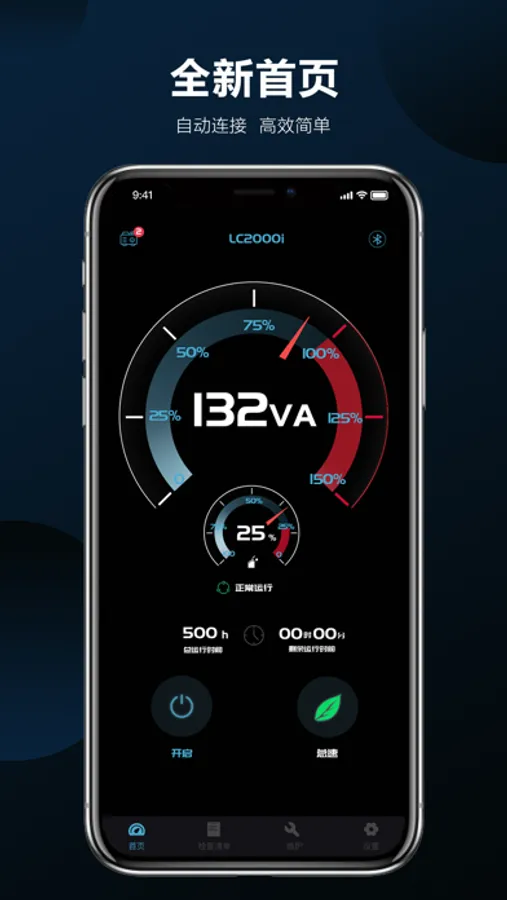 智能发电机是一款智能连接控制发电机的应用,通过蓝牙连接发电机,可以远程操作发电机,如启动、模式切换等功能,并能读取发电机的电流,电压,功率,电量,剩余油量,剩余运行时间。检测故障报警状态,定期保养提醒。