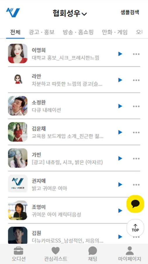 성우의 샘플 목소리가 1000 개 이상 등록되어 있습니다