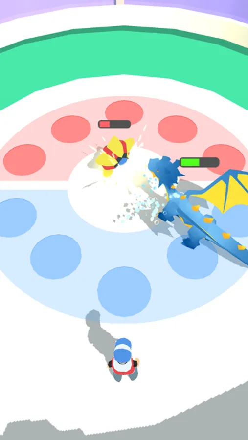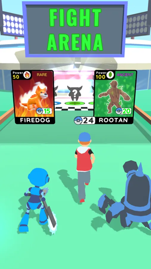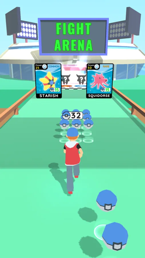 The player collects balls, then uses them to buys monsters for his team. Finally, the player fights with enemy's monsters.