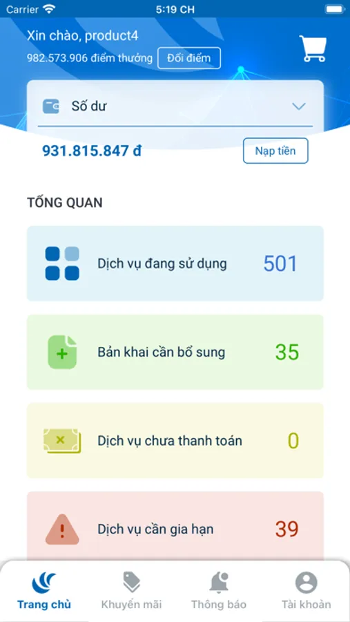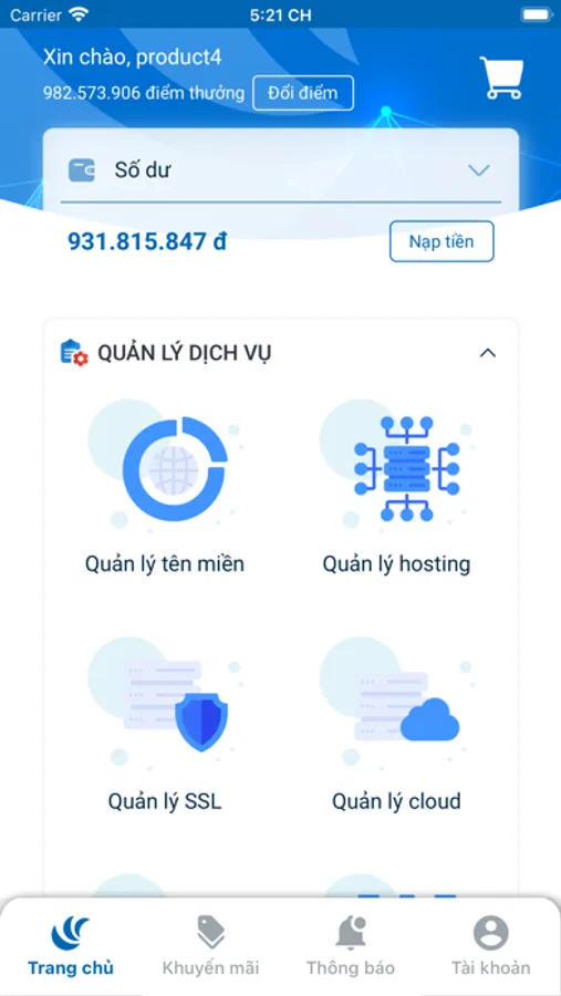 _ Xem thông tin và quản lý các dịch vụ tên miền, hosting, ...