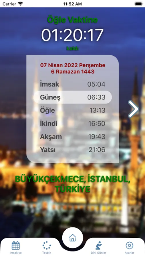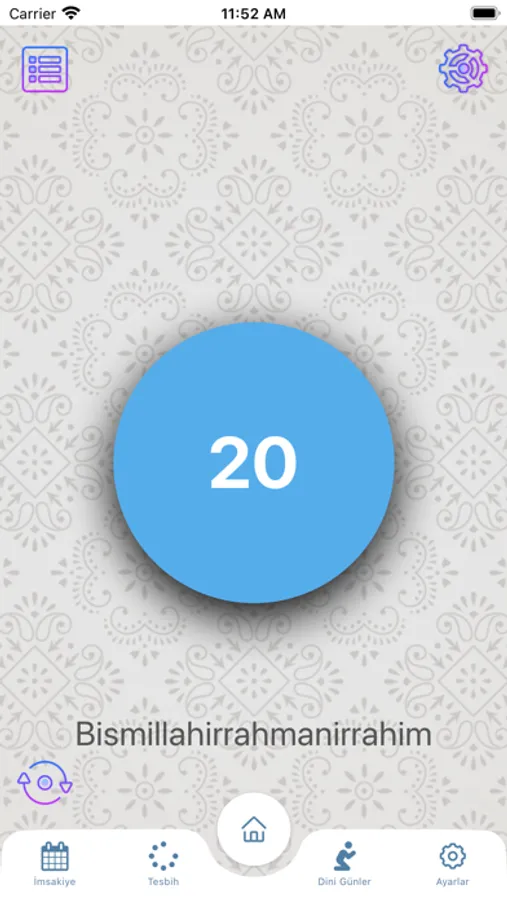 - Zikirleriniz kolayca çekebileceğiniz tesbih özelliğini kullanabilirsiniz
