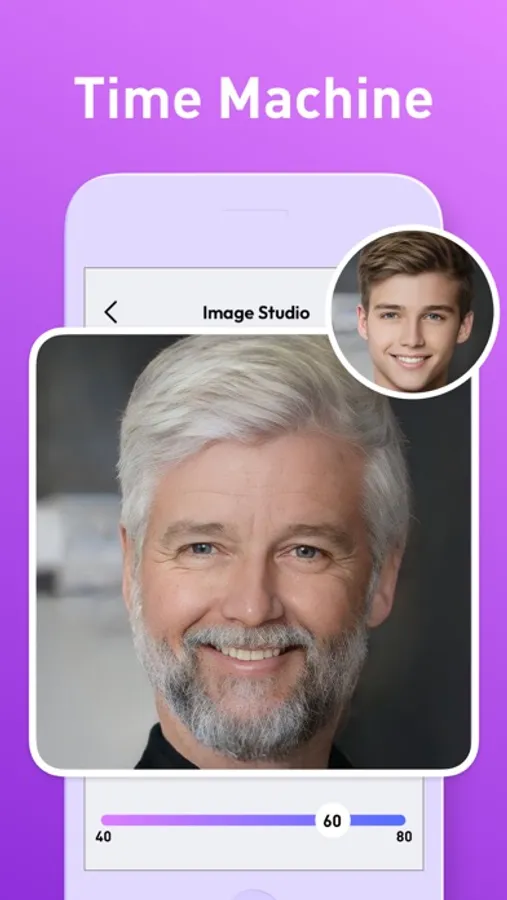 Take a selfie from your phone camera or select a photo from your gallery. Choose the desired age and see the amazing results. The application will recognize your face and turn it into your desired age. This will be a surprise and fun worth waiting for!