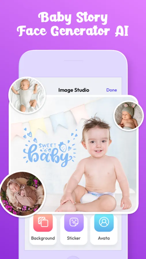 You can create Baby Art with many wonderful style and baby sticker, with background and sticker cute, realistic.