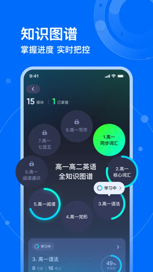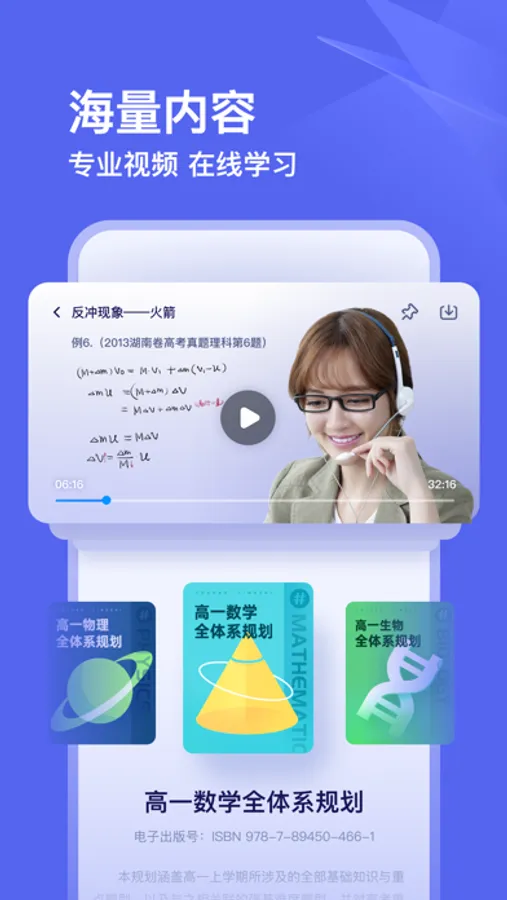 有道领世APP,以高中完整学习知识体系为框架,为普通高中、职业高中、成人自考等用户群体,提供电子音视频的下载、使用并提供学习规划与学习方法指导、生涯规划和职业规划指导,向用户提供个性化学习方案和督学服务。通过有道领世智能学习系统,学生可以体验智能学情诊断,定位关键薄弱点,制定AI学习路径规划,根据学情调整计划,全方位提升学生学习体验。高效学习,从有道开始。