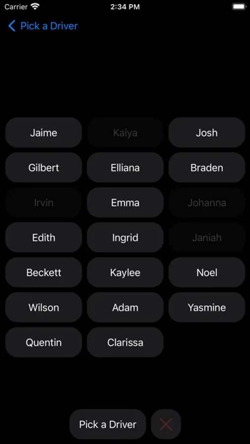 • Tap on anyone in the name selection screen to temporarily exclude them from the list