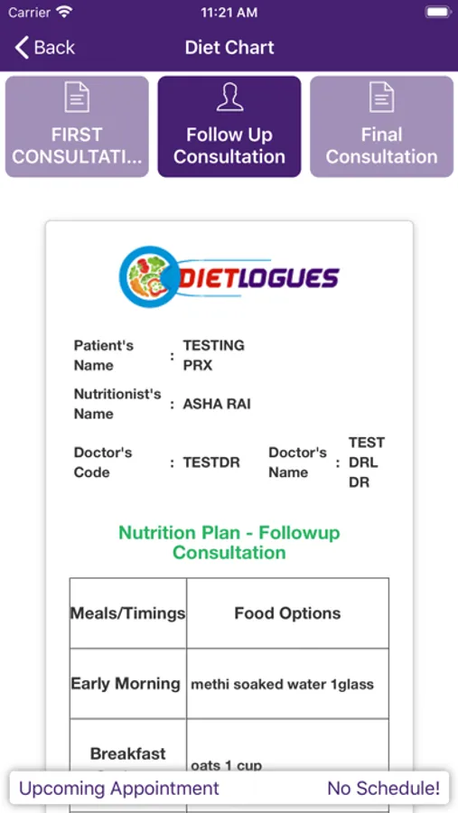 Step 3: The Nutritionist cross verifies the details and calls the patient telephonically within 24 hours and completes the consultation and sends the Nutrition plan on mail/mobile app.