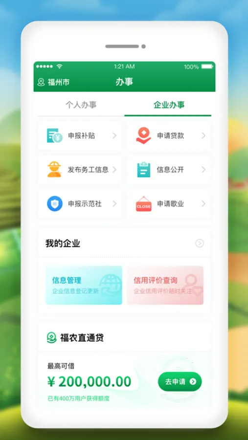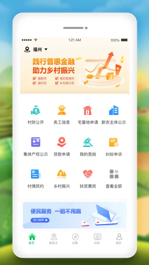 “福农e服”是福建省农信旨在为当地政府提供农业农村数据采集、综合治理、三资管理、资源要素流转、融资服务等提供解决方案,整合农业基础数据资源,建成以智慧农村为主体的一站式管理服务体系,打造强有力的综合监督管理机制,实现互联网与“三农”管理的融合,更好地助力农村要素市场化配置改革,推进实施乡村振兴战略。