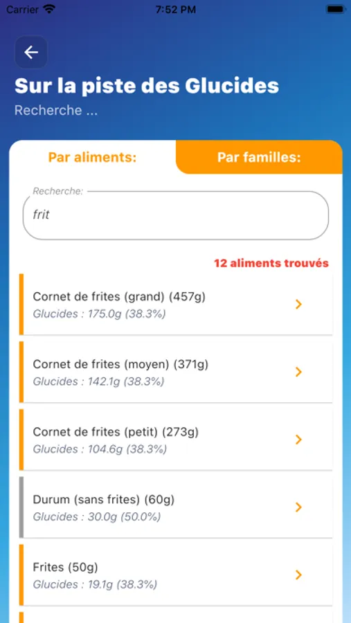 La majorité des aliments sources de glucides y sont répertoriés ainsi que leur teneur en glucides vous permettant un calcul simple et rapide.