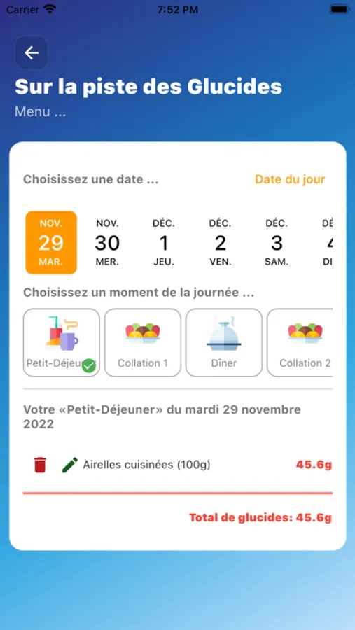 Cet outil peut vous aider dans la gestion de votre diabète. Avec l'utilisation des insulines ultra-rapides ou avec la pompe à insuline, il est possible et parfois même indispensable d'adapter la dose d'insuline rapide ou le bolus de la pompe à la quantité de glucides ingérés au cours d'un repas. L'application permet de :