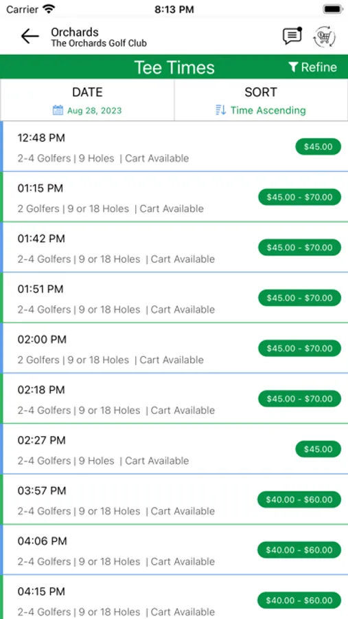 The Orchards GC gives you access to an on-course rangefinder, live scoring system, course information, weather updates, tee-time booking service, and messaging systems functions. Additionally, the The Orchards GC app may be used to sign up for events, view your membership portal, order food and beverage, and receive course promotions at The Orchards GC.