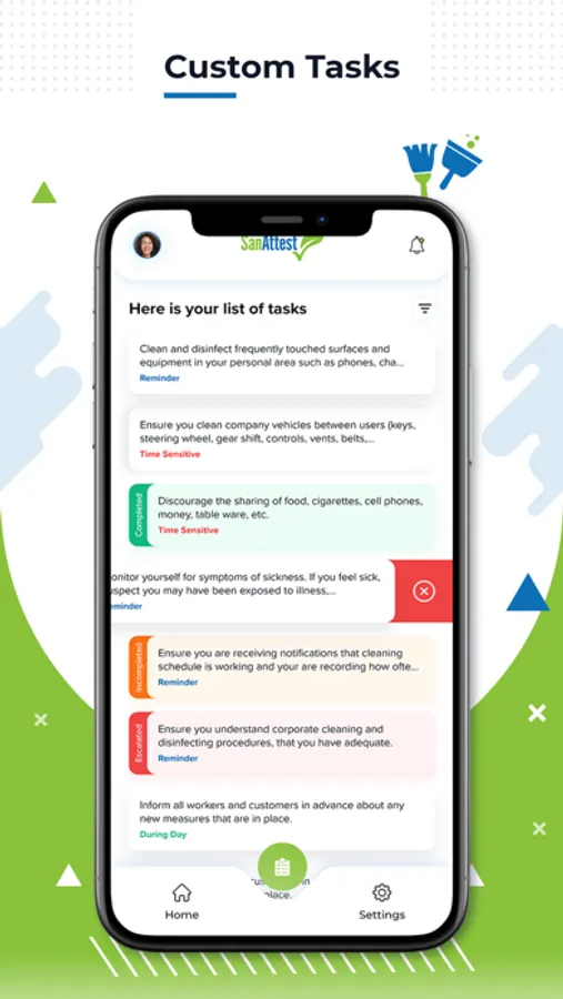 2) Real time status for assigned tasks -Just swipe left & right to mark the tasks status. Using SanAttest is super easy! Confirming activity completion takes just seconds.