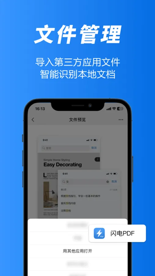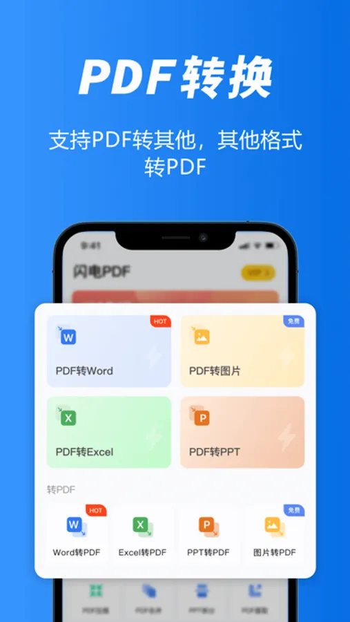 闪电PDF转换是一款功能强悍,体积小巧的专业PDF转换器软件。专门为有移动办公需求的用户设计,使用它,你可以在手机上完成文件阅读,文件格式转换,读书笔记标注等操作,简单方便。