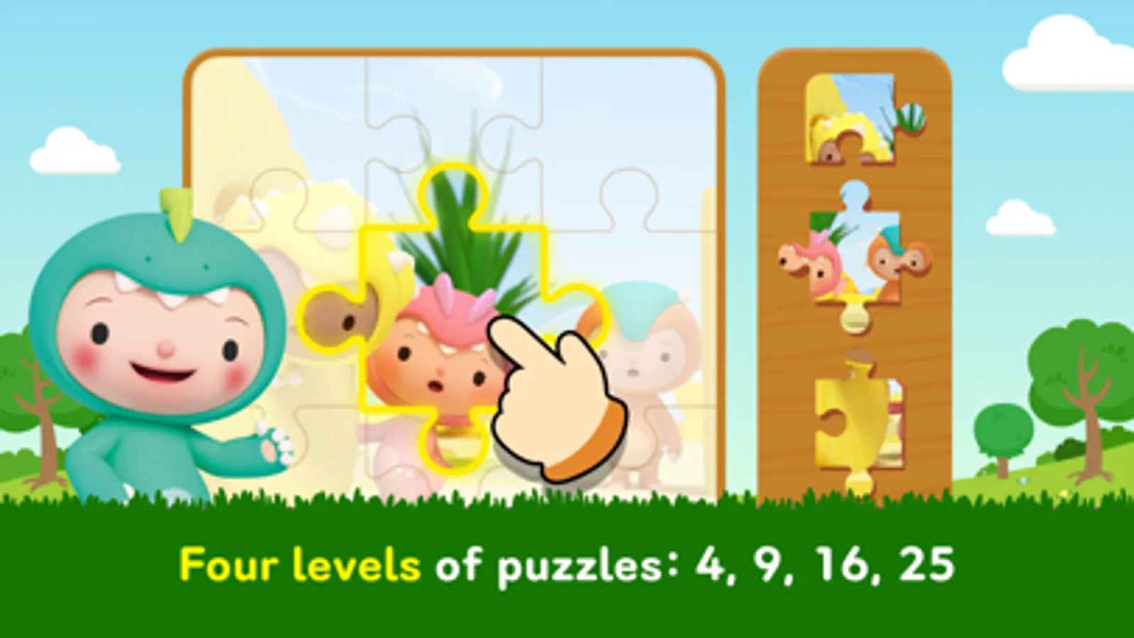 - Toddler puzzles with 4 different levels of puzzles: 4, 9, 16, 25 puzzle pieces