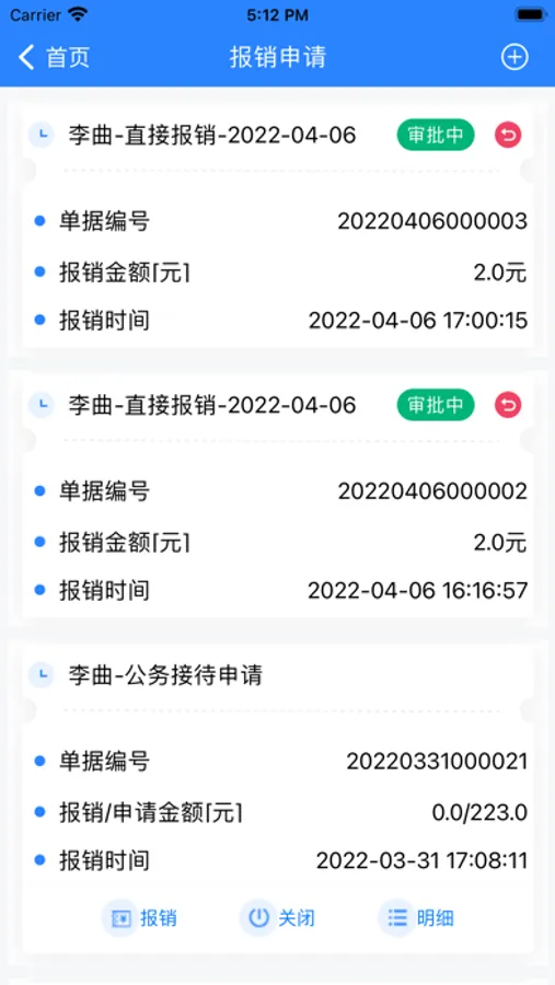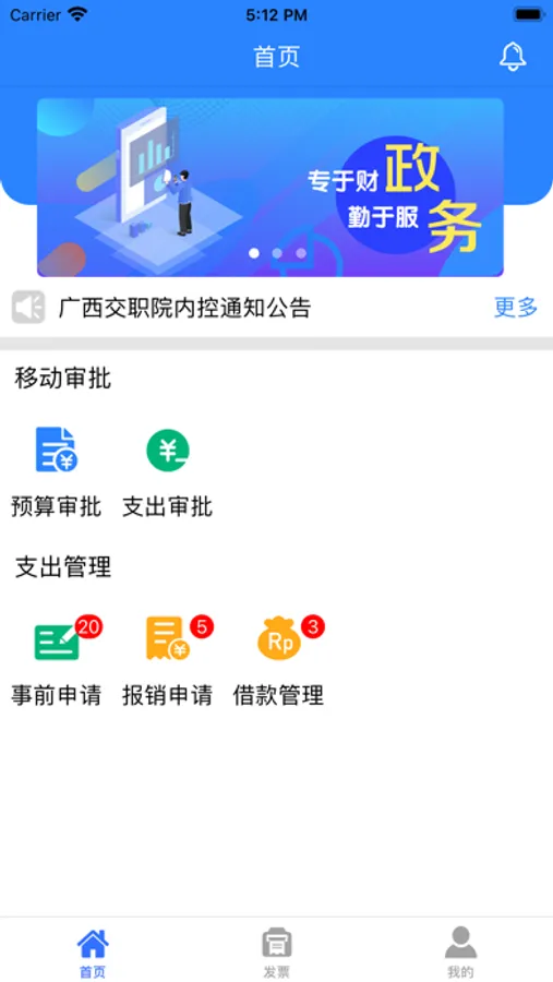 应用以移动端作为入口,提供报销申请的录入与审批,拍票随时记录发票票据,事前申请,报销申请,随时提交,预算审批、支出审批、采购审批、合同审批、收入审批提供审批功能,统计页面,提供相关信息的搜索和分析展示
