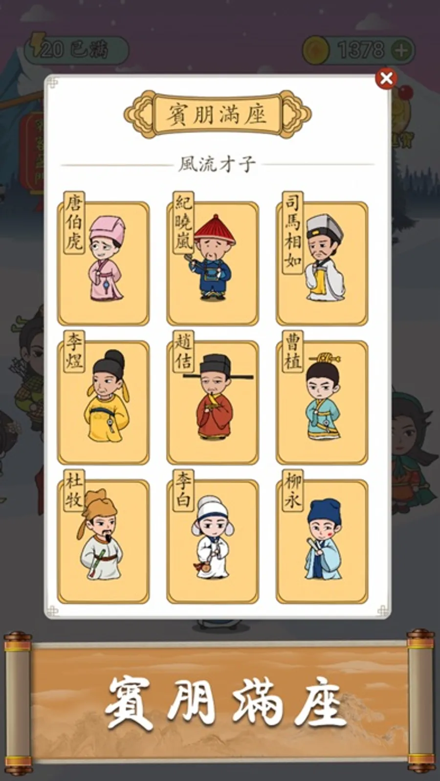 -賓客盈門:You are not alone when playing the game, as the game continues, poets and friends will come and join you.