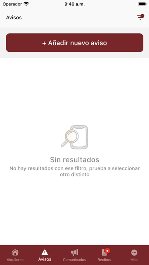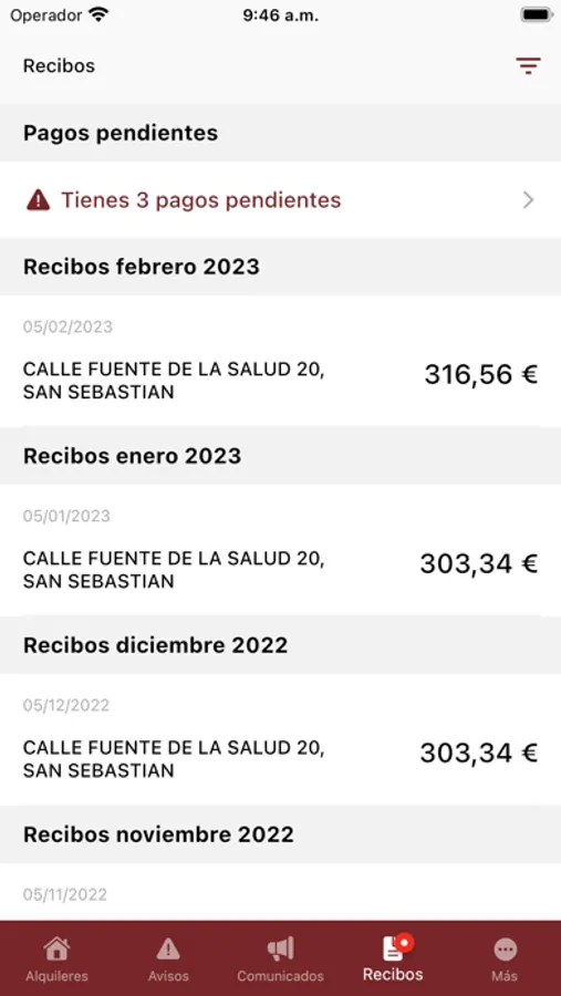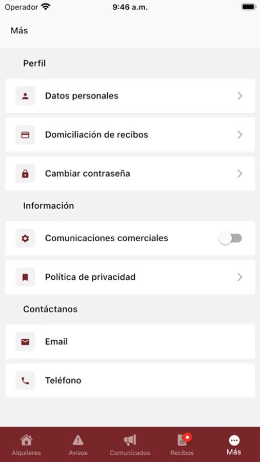 Muévete por los submenús: Alquileres, Avisos, Comunicados, Recibos y Más…