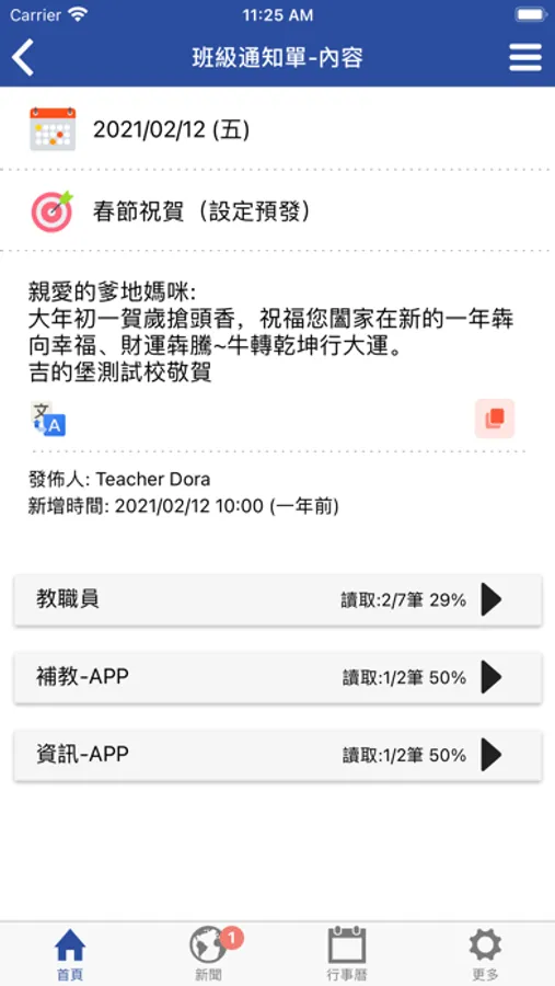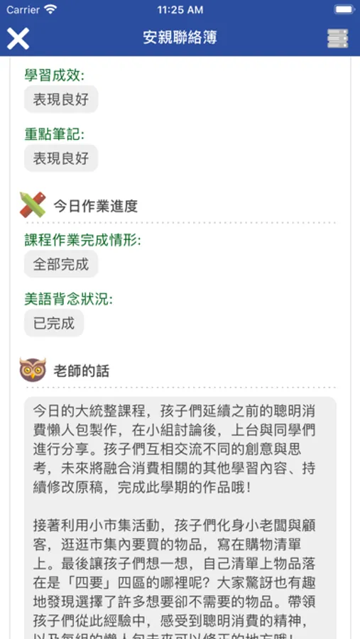 2. 班級通知單:接收班級教師或學校發送的訊息。