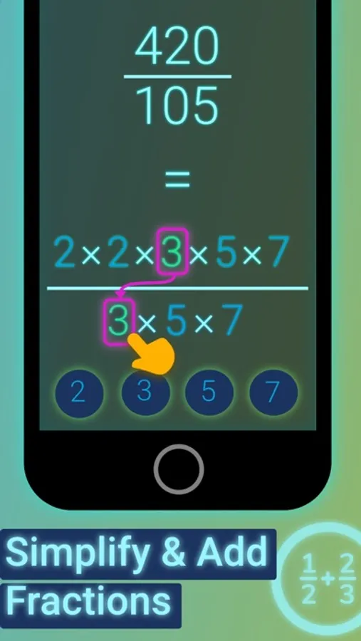 6 - Algebraic fractions : Practice prime decomposition, fraction simplification and fraction addition with simple gestures.