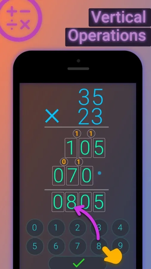 2 - Operations game : Practice the 4 vertical operations (multiplication, addition, subtraction, division).