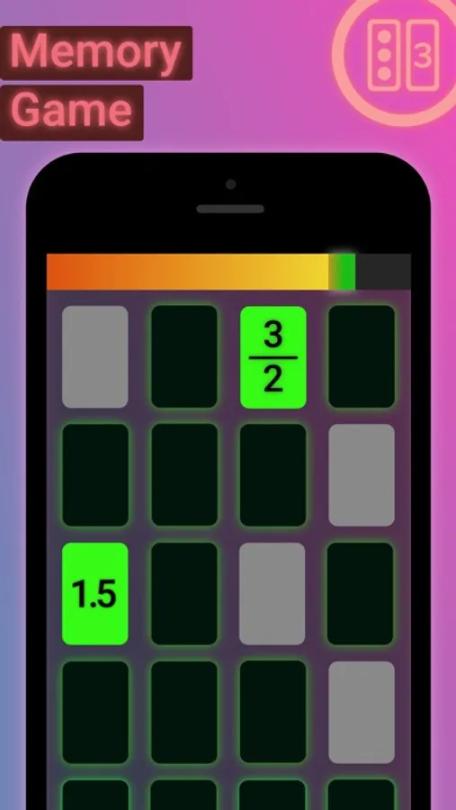 4 - Memory game : Beat the clock to match numbers in their different forms 2 + 4 = 6 = 12/2 .