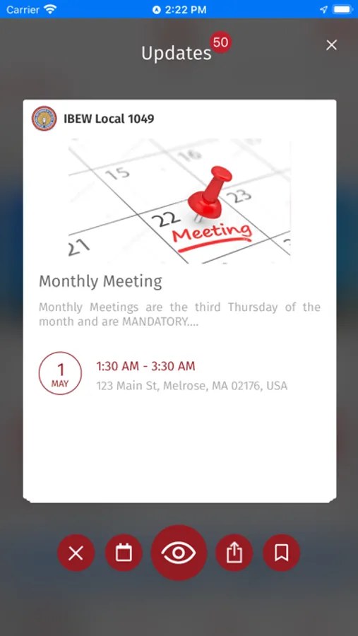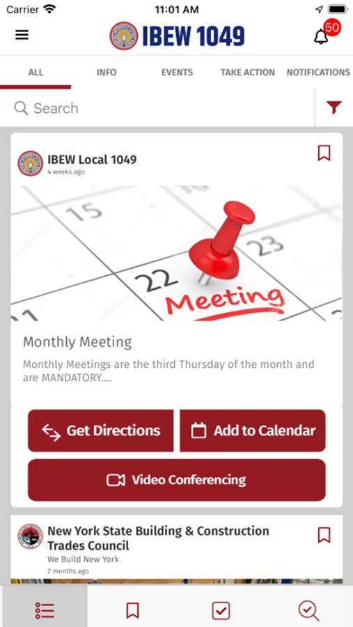 IBEW Local 1049 App allows for real-time member engagement. Launch the app, follow and view the latest news, events & and job opportunities. Quickly swipe through content - bookmark what is of interest, toss aside what isn’t. Users can easily act and engage in important initiatives. Never miss important updates again!