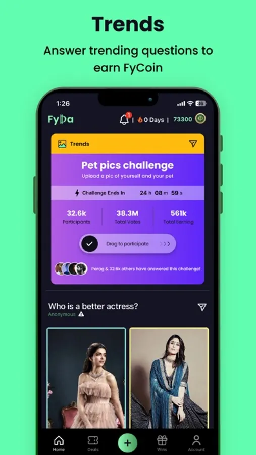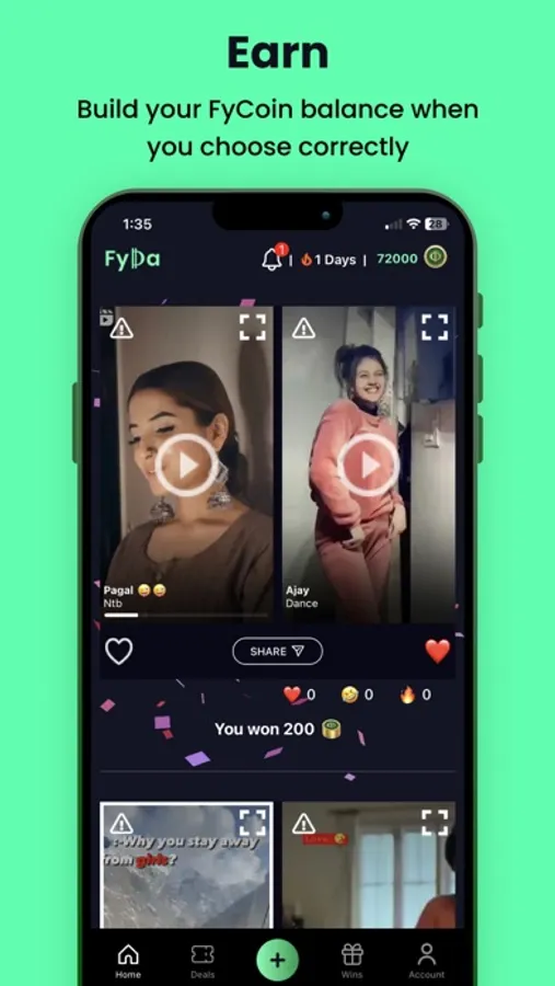 FyDa is a gamified entertainment platform where you can compare short videos and photos and guess the more popular one. You can earn fyCoin (Φ) each time you guess correctly. Your opinion matters. Now you can profit from it while watching videos and having fun