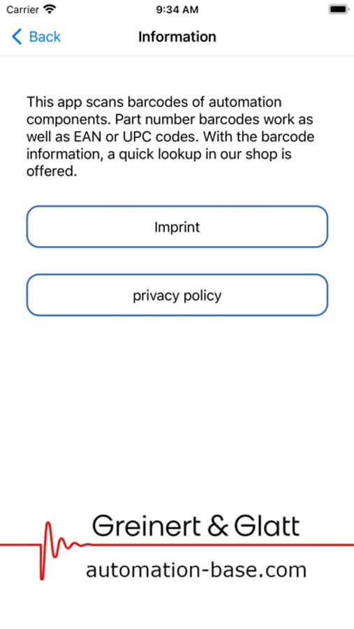 This app scans barcodes of automation components. Part number barcodes work as well as EAN or UPC codes. With the barcode information, a quick lookup in our shop is offered.