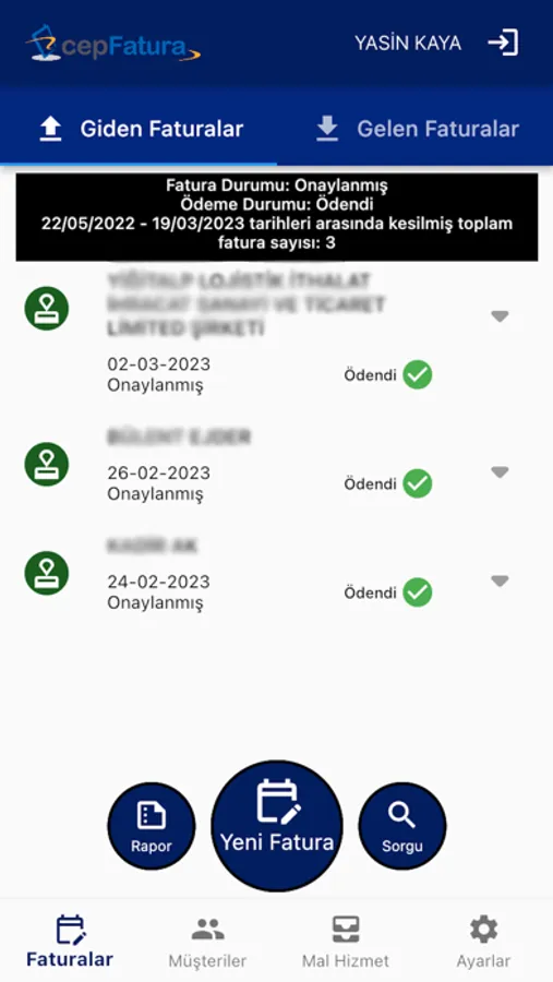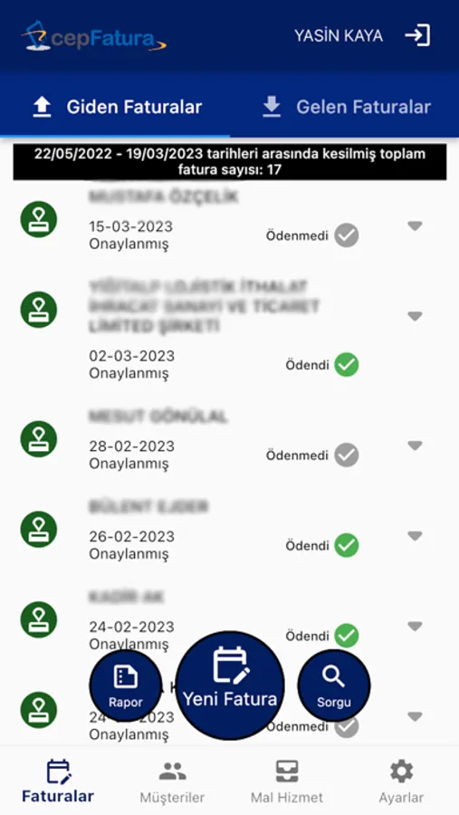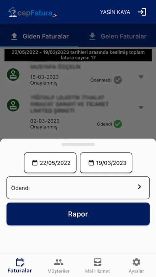 Faturaları ödeme durumuna göre sorgulama/raporlama