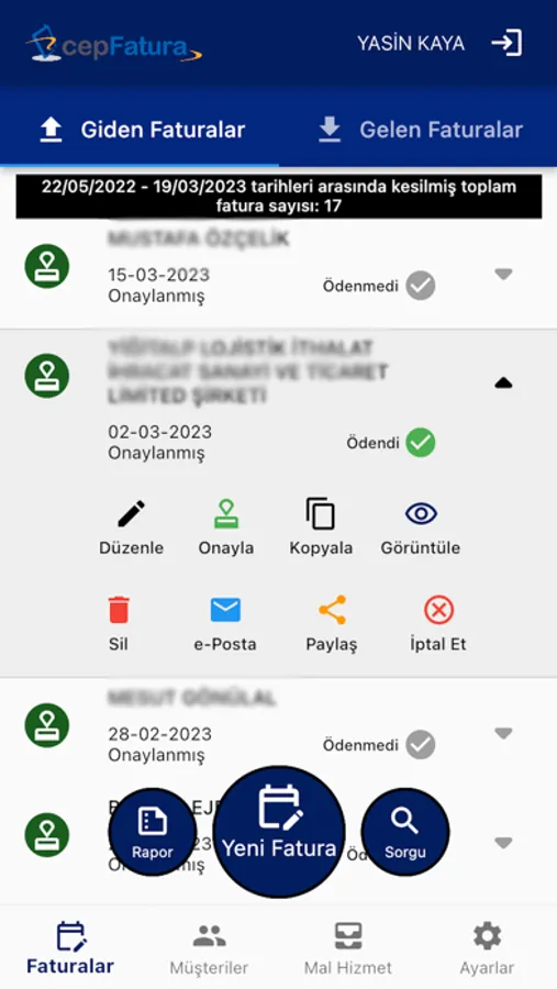 cepFatura ile yapabilecekleriniz işlemlerden bazıları şunlardır;