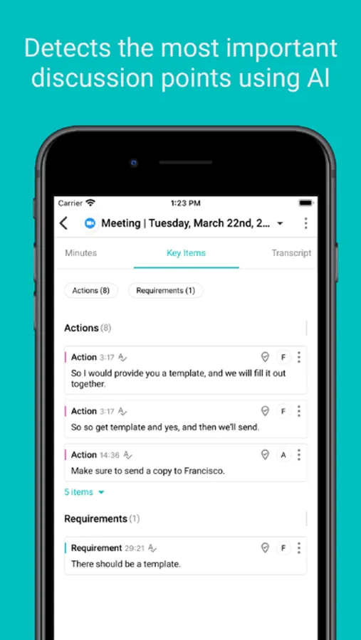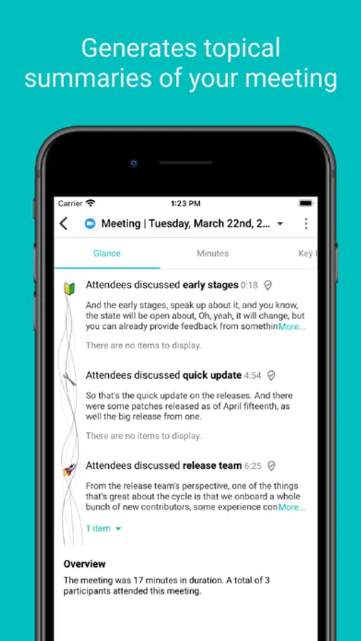 Sembly records, transcribes, and analyzes your meetings to provide smart summaries and actionable insights. Sembly connects to your Google or Outlook calendar and joins your Google Meet, Microsoft Teams, and Zoom calls along with you or on its own. With Sembly, you can also record and analyze offline conversations using your phone or laptop.