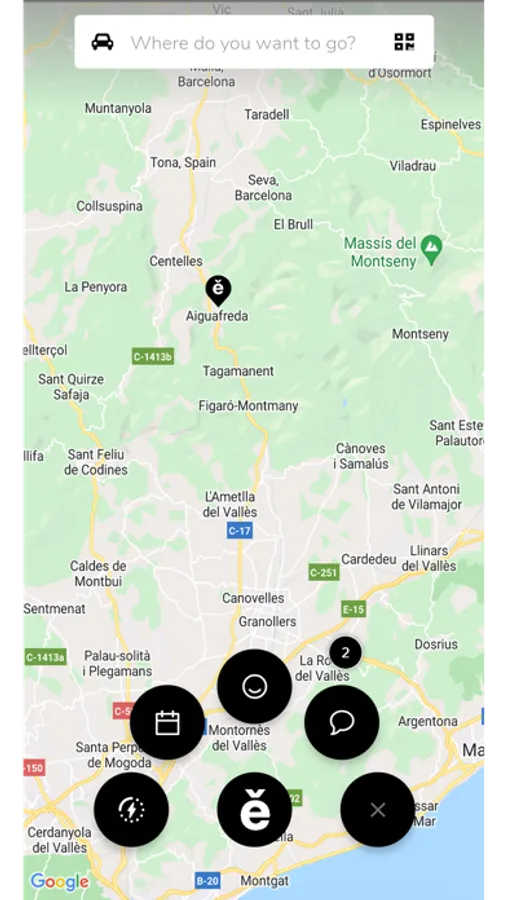 També incorpora la Identificació i registre de l'usuari, un mapa on s'indica la posició en la qual es troba l'usuari i la dels carregadors.