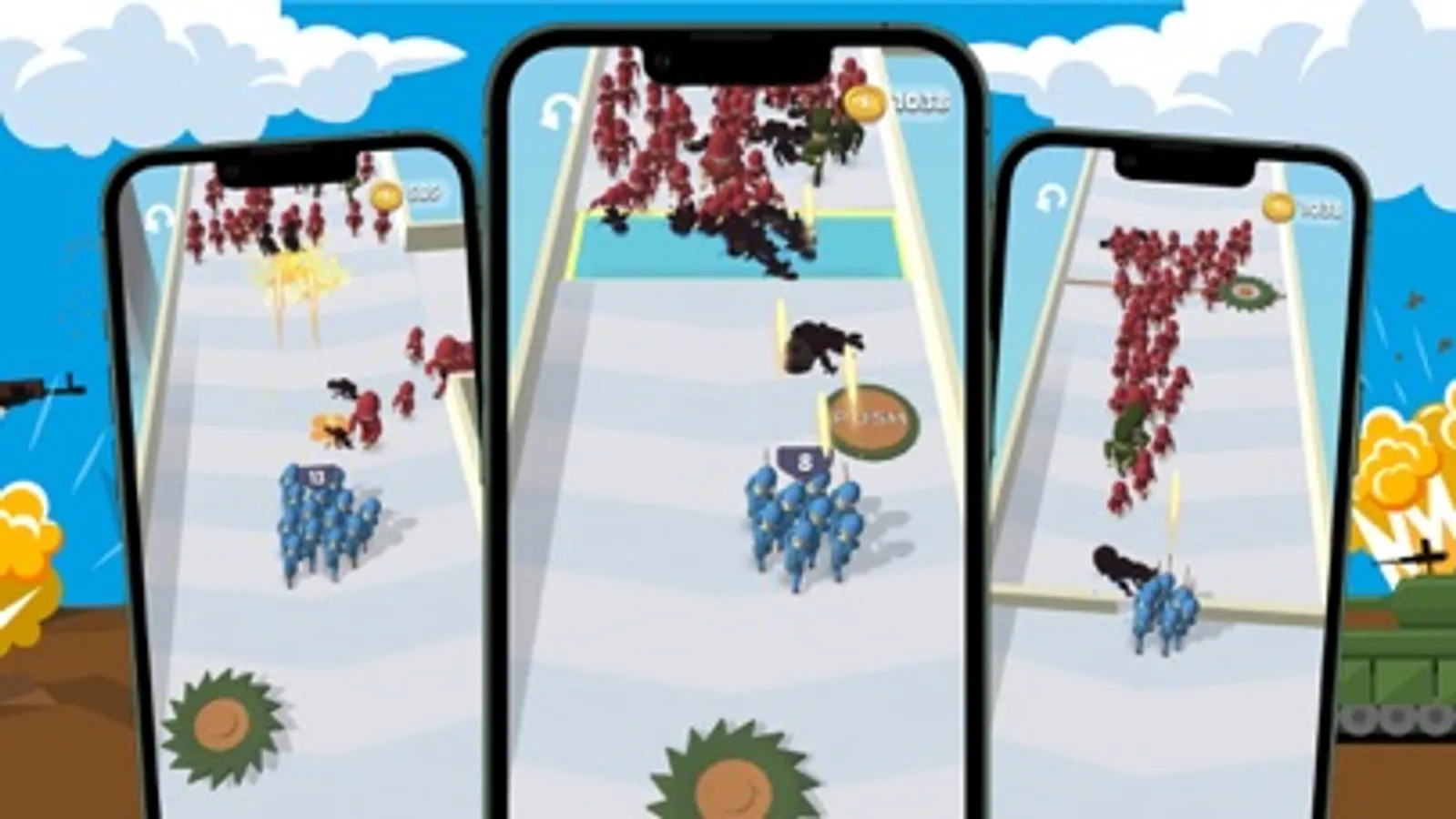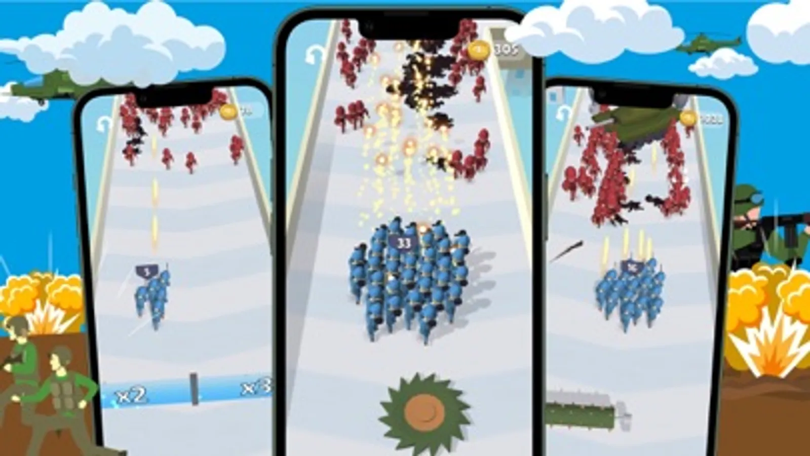 Pass wisely through the gates and be sharp, some may multiply your army, while others can cut it lower! Protect your soldiers from the getting sliced by the sharp obstacles!