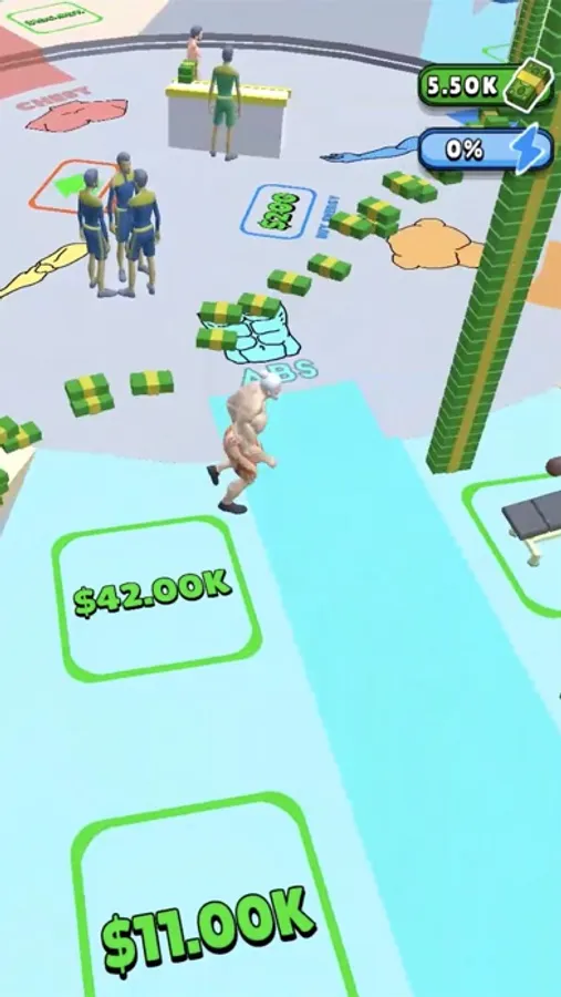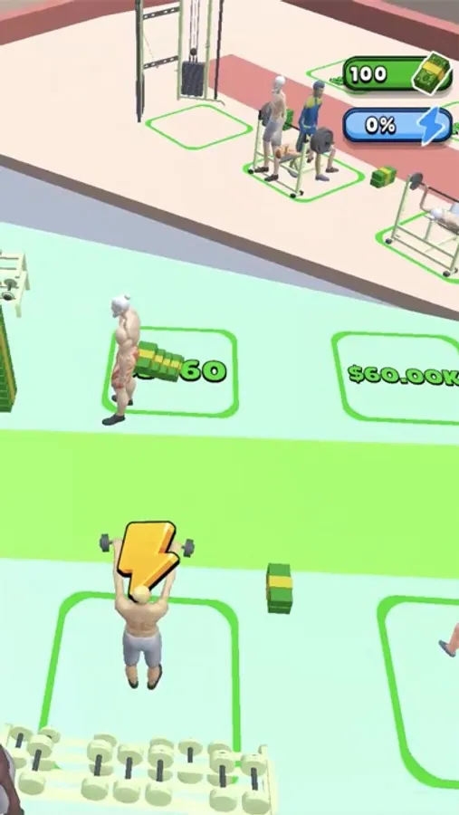 Build your Gym and get Customers! Collect your earnings, buy new equipments and expand your Gym!