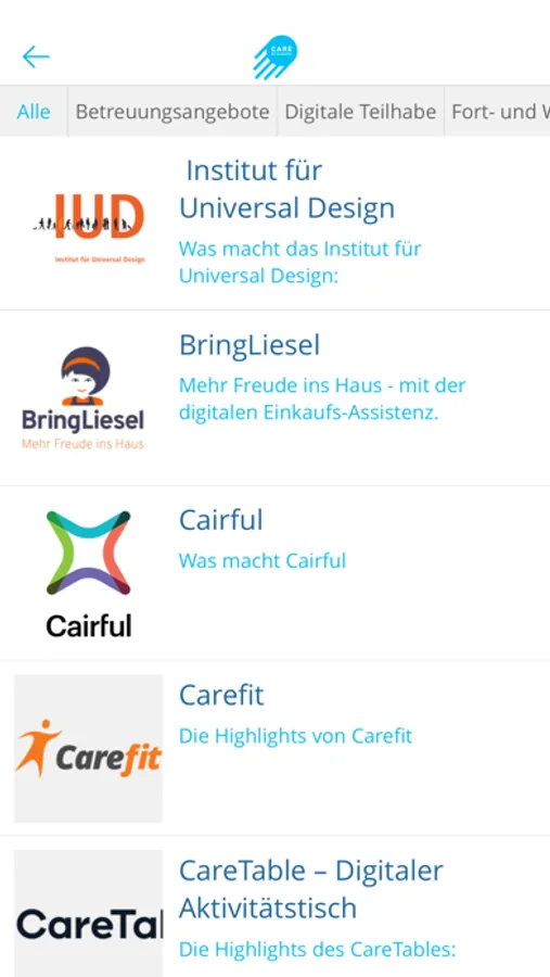 Die Care for Innovation App ist eine App um Interessierten aus der Sozialwirtschaft einen Überblick zu aktuellen Innovationen in der Branche zu geben