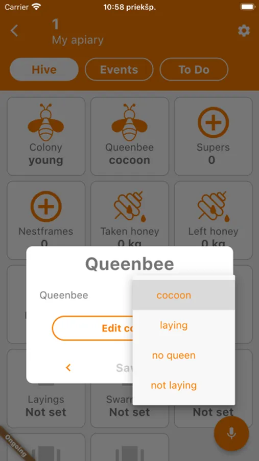 The app is a comprehensive tool intended for managing your apiaries and colonies, taking audio, typed and automatic (using NFC tags) notes and for viewing tasks to be performed. It works both on- and offline, so no need to worry about spotty internet or mobile coverage. All your data is backed-up in “the cloud”, so nothing is lost even if you lose your mobile phone.