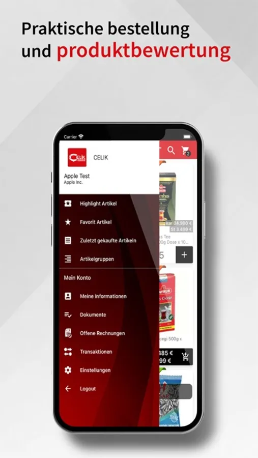 Mit dieser Anwendung können unsere Kunden ganz einfach Bestellungen aufgeben: Bestellannahme, Nachverfolgung, Rechnungen ansehen, Favoritenliste...