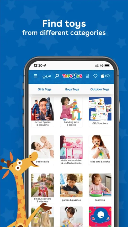 To ensure a happy shopping experience for kids we offer a special navigation system that makes it easy to explore toys by Girls, Boys, Outdoor, BabiesRus, games, indoor and outdoor sporting goods, figurines, building blocks, puzzles, board games, remote-controlled cars, dolls, art and craft toys, role play costumes and many other classic toys that inspire creativity and develop cognitive skills.