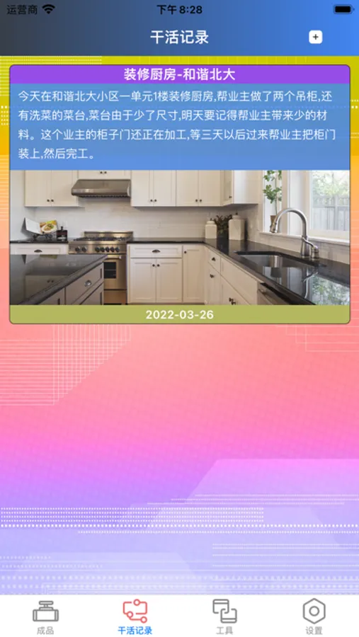 记录自己装修过的成品和当天干活的记录和买工具的支出